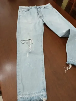 Jeans a vita alta con un design moderno e un tocco grintoso. - Vita alta - Effetto strappato sulle ginocchia - Fondo sfrangiato e svasato - Vestibilità comoda