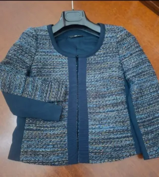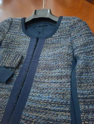 Elegante bolero Liu Jo con un ricercato tessuto. - Tessuto bouclé con fili dorati. - Scollo rotondo. - Chiusura frontale con gancini. - Maniche lunghe.
