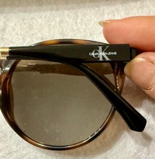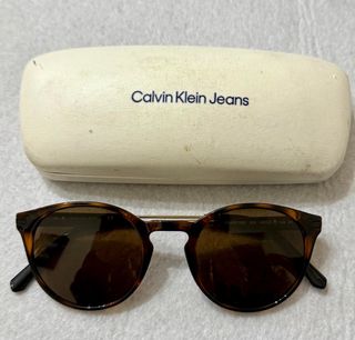 Occhiali da sole Calvin Klein Jeans con montatura color tortora e lenti scure. - Montatura in acetato effetto tartarugato. - Lenti marroni sfumate. - Logo Calvin Klein Jeans sul lato interno.