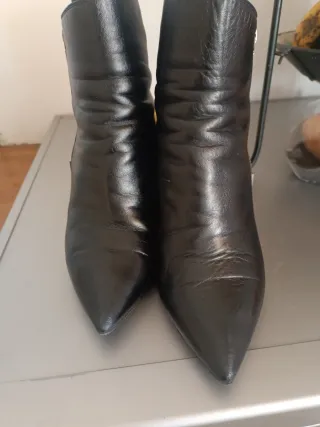 Eleganti stivaletti con tacco a piramide cm7 Calzano meno quindi 39 circa Con scatola - Zip laterale per una facile calzata. - Punta affilata per un look moderno. - Tacco scultoreo e geometrico.