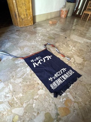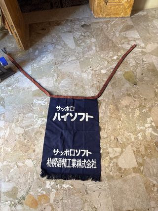 Grembiule tradizionale giapponese con scritte, prezzo trattabile. - Tessuto blu scuro. - Dettagli con frange sul fondo. - Laccetti per legarlo.