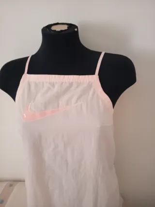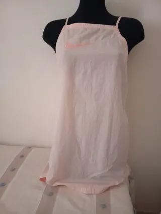 Abito sportivo Nike da donna, di colore rosa. Perfetto per un look casual e comodo. - Logo Nike sul petto. - Spalline sottili. - Tessuto leggero.