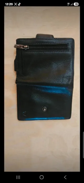 Portacarte Roncato in pelle nera. - Design compatto e funzionale. - Chiusura con bottone a pressione. - Tasca esterna con zip. - Logo inciso all'interno.