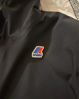 Giubbotto K-Way con sistema di identità prodotto. - Etichetta con tecnologia RFID. - Dettaglio Powered by Basic Net.