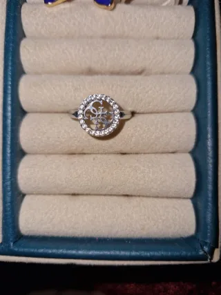 Elegante anello Guess con un design circolare impreziosito con zirconi. - Logo Guess al centro. - Zirconi scintillanti lungo il bordo.