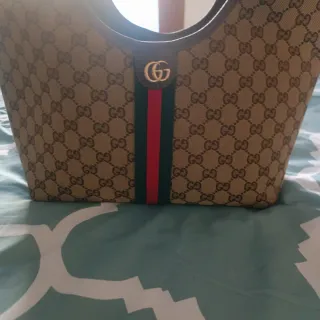 Shopper Gucci di medie dimensioni in ottime condizioni. - Colore verde con motivo decorativo. - Manici neri intrecciati.