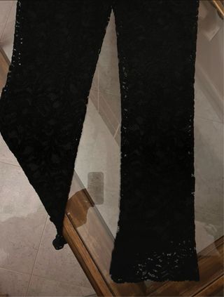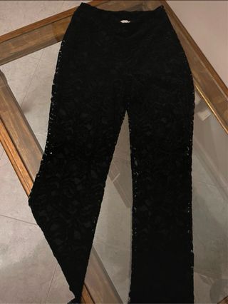 Pantaloni eleganti in pizzo. - Tessuto in pizzo floreale. - Vita alta. - Gamba larga.