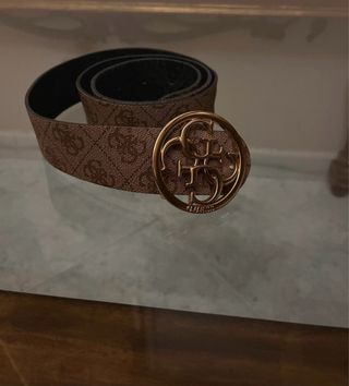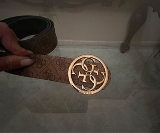 Cintura Guess da donna con un design elegante. - Fantasia monogramma Guess. - Fibbia rotonda color oro con logo Guess inciso. - Dettagli in oro.