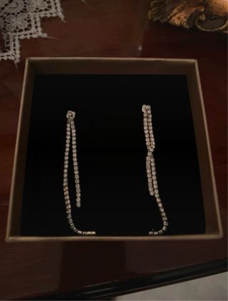 Eleganti orecchini pendenti con brillanti. - Design a cascata con cristalli luminosi. - Chiusura a perno.