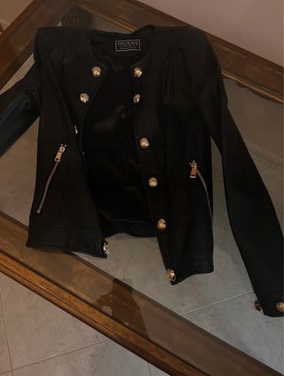 Elegante giacca in ecopelle Guess. - Chiusura con bottoni dorati. - Dettagli con zip. - Collo tondo.