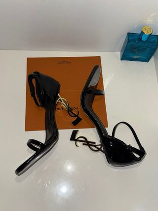 Eleganti tacchi Saint Laurent Paris. - Design con tacco dorato. - Materiale lucido nero.