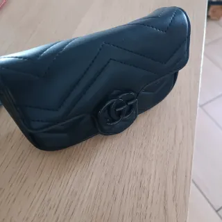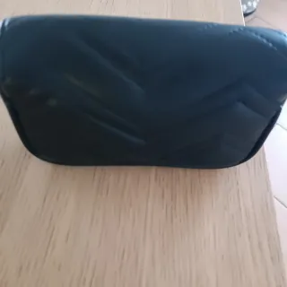 Mini borsa in pelle nera . Perfetta da portare a tracolla o a mano. - Design trapuntato a chevron. - Logo in metallo nero. - Chiusura con patta. - Tracolla sottile. Cm16