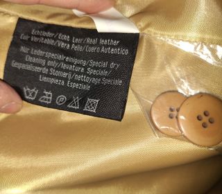 Giacca da uomo in vera pelle scamosciata, un capo iconico degli anni '90. 2 taschini interni con bottoncini, 2 tasche + taschino, abbottonatura a bottoni, con 2 di ricambio - Materiale: 100% pelle scamosciata - Taglia: 56 - Colore: Beige/marrone