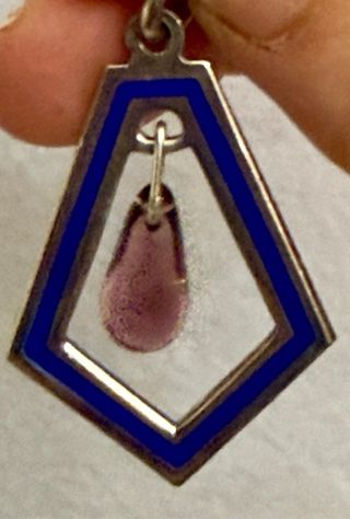 Elegante ciondolo vintage in Argento 800. - Design a forma di rombo con finiture blu. - Pendente a goccia color rubino.
