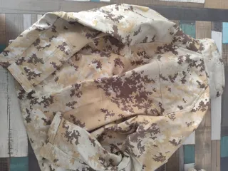 Maglietta a maniche lunghe con fantasia mimetica. - Collo alto con zip. - Patch in velcro sulle maniche. - Polsini con bottoni. Come si vede dalle foto a due piccoli fori