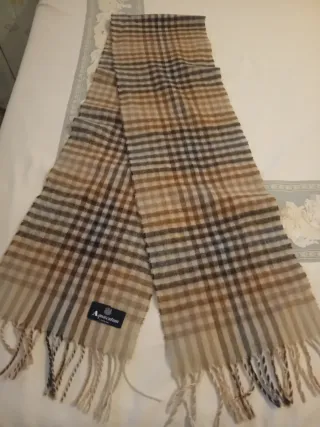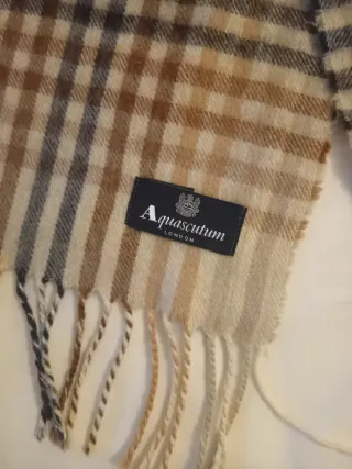 Elegante sciarpa Aquascutum da uomo, perfetta per completare il tuo look. - Fantasia a quadri classica. - Tonalità di beige e marrone. - Orlo con frange.