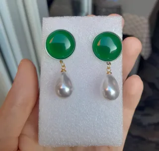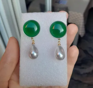 Orecchini vintage giada verde e perle