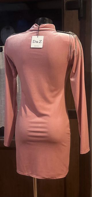 Elegante abito corto in velluto, perfetto per occasioni speciali. - Tessuto morbido e lucido. - Design monospalla con manica lunga. - Dettaglio drappeggiato sul davanti. - Orlo asimmetrico.