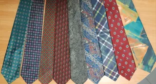 Nove cravatte misto seta Made in Italy in ottime condizioni modelli assortiti: paisley, geometrico, tartan, motivi classici e fantasia.