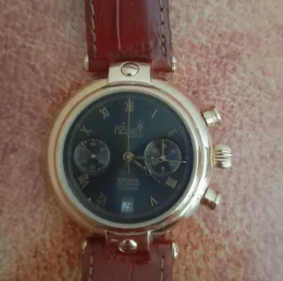 Orologio cronografo russo Poljot 3133 da polso uomo, movimento meccanico 3133 23 rubini Modello raro in edizione limitata, noto per la sua robustezza e venne utilizzato anche in missioni spaziali da cosmonauti sovietici. Quadrante nero, fondello trasparente, numeri arabi, due piccoli quadranti secondari per i contatori dei secondi e dei minuti, cinturino in pelle originale. Poco usato, originale e perfettamente funzionante, manca coperchio fondello e il cinturino ha segni di usura all'interno. Diametro 3,8 cm e polso 25 cm.
