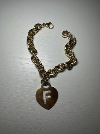 Elegante bracciale con maglie spesse e un ciondolo a forma di cuore. - Ciondolo a forma di cuore. - Decorazione con lettera F tempestata di strass. - Chiusura a moschettone.