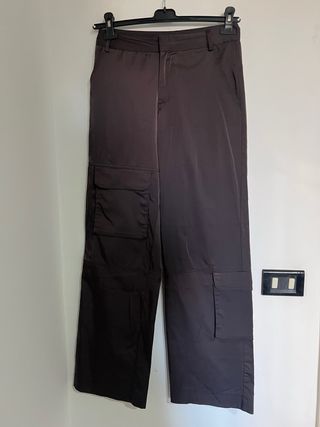 Pantaloni cargo Zara in tessuto satinato. - Vita alta. - Tasche cargo laterali. - Gamba dritta.