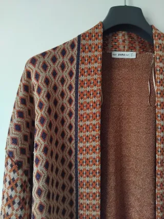 Elegante cardigan lungo Zara Special Edition con un motivo jacquard unico. - Fantasia geometrica con rombi. - Bordi a contrasto. - Tessuto lavorato a maglia.