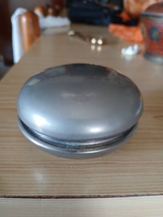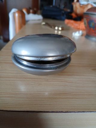 Elegante portapillole dal design classico. - Materiale metallico lucido. - Forma arrotondata e compatta.