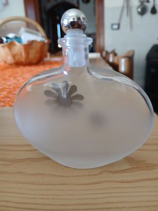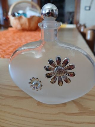 Elegante porta profumo in vetro satinato con decorazioni a forma di fiore. - Design a forma di cuore. - Dettagli floreali in rilievo.