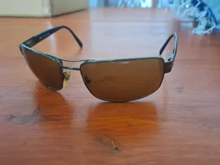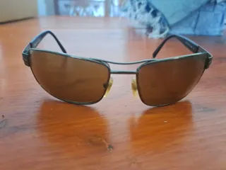 Occhiali da sole con lenti color marrone/verde. - Montatura metallica.