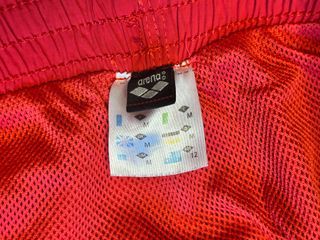 Costume da bagno Arena da uomo, di colore rosso. TG. M - Tessuto leggero e ad asciugatura rapida. - Vita elasticizzata con coulisse per una vestibilità personalizzata. - Cuciture a contrasto bianche per un tocco di stile.