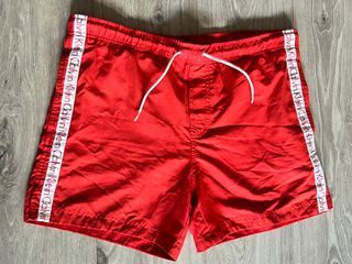 Costume da bagno Calvin Klein da uomo, di colore rosso. TG.S - Logo Calvin Klein ripetuto sulla fascia laterale. - Coulisse bianca in vita per una vestibilità regolabile.