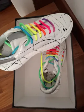 Scarpe sneakers bianche con lacci arcobaleno