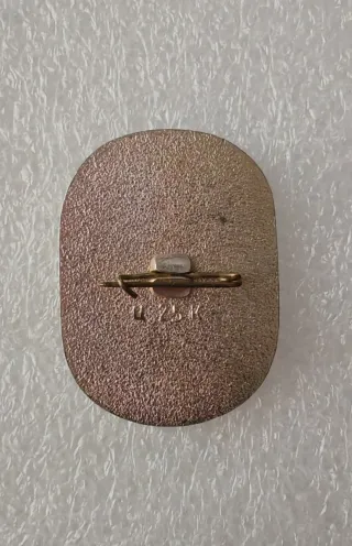 Spilla commemorativa dedicata a Yuri Gagarin e al suo primo volo spaziale. - Raffigura il profilo di un astronauta con casco. - Presenta la scritta XXV LET SO DNYA POLETA YU.A. GAGARINA. - Indica la data 12-IV-61.