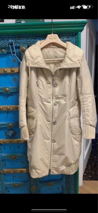 Elegante piumino da donna color champagne, perfetto per le giornate più fredde. Presenta un collo ampio e un design moderno. - Chiusura con zip e bottoni. - Tasche frontali. - Polsini e fondo a costine. collo molto ampio e avvolgente