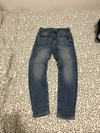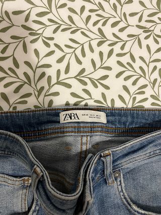 Jeans da uomo Zara in denim blu. Vestibilità comoda e stile casual. - Tessuto resistente. - Dettagli con cuciture a vista. - Chiusura con zip e bottone.