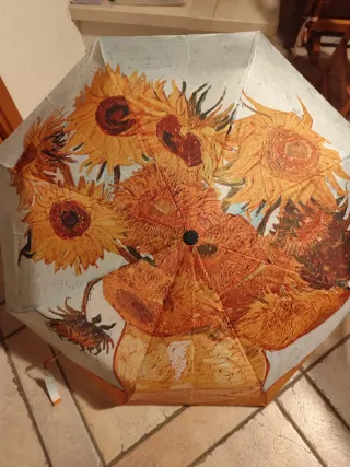 Ombrello automatico con la celebre stampa I Girasoli di Vincent Van Gogh. Un accessorio che unisce arte e praticità. - Design ispirato al dipinto I Girasoli. - Meccanismo di apertura automatico, antivento e con foderino.