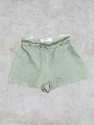 Pantalone corto Elisabetta Franchi in tessuto. - Dettaglio catena in vita. - Tessuto leggermente cangiante.