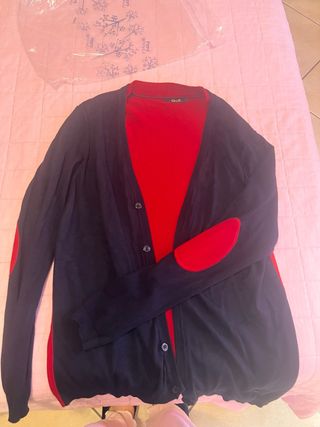 Bellissimo cardigan da uomo, in perfetto stato. - Colore blu con dettagli rossi. - Ottimo per la mezza stagione. - Un capo elegante e versatile.