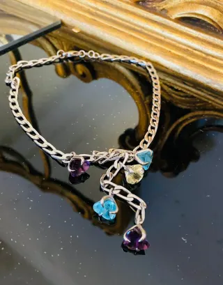 Delicata collana con pietre naturali - Pietre di colore blu e viola. - Montatura in metallo argentato.