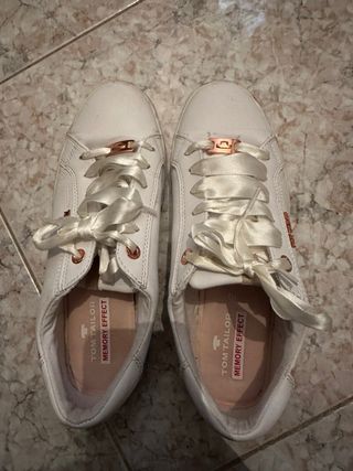 Eleganti scarpe da ginnastica Tom Tailor. - Lacci in raso bianco. - Dettagli color oro rosa. - Soletta Memory Effect per un comfort duraturo.