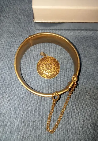 Bracciale e ciondolo Toledo damascena oro anni 70