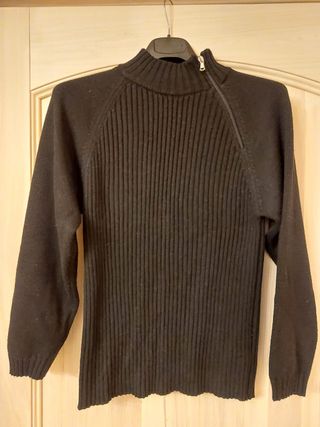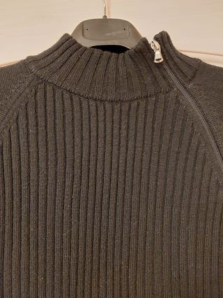 Maglioncino a costine con collo alto e zip obliqua. - Tessuto a costine. - Collo alto. - Zip obliqua sul davanti.
