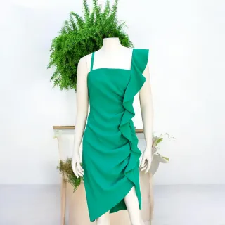 Abito Pinko verde con rouches