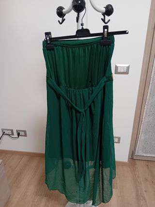 Vestito verde da cerimonia Elegante Taglia L Senza spalline Mai messo Con pizzo sullo strascico