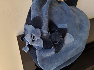 Vendo bellissima borsa da donna in materiale scamosciato colore blu celeste con applicazioni di fiori su un lato eseguita da artigiano italiano