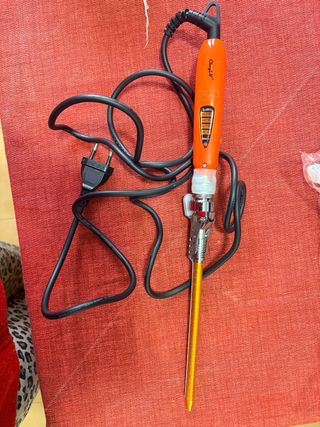 Piastra per creare ricci afro. - Colore oro e arancione. - Cavo di alimentazione nero.