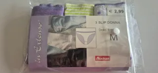 Confezione da 3 slip da donna. - Misura M taglia 44/46 - Composizione: 100% cotone - Fantasie assortite