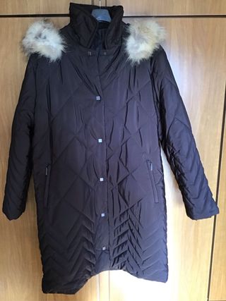 Elegante cappotto Gijbbotto in una calda tonalità marrone. Presenta un design trapuntato a rombi Cappuccio staccabile con bordatura in pelliccia sintetica. Chiusura frontale con bottoni a pressione. Tasche laterali con zip. Larghezza spalle 51cm Lunghezza 105cm