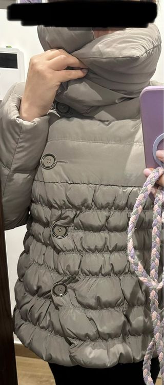 Elegante giubbotto da donna, perfetto per le giornate più fresche. - Colore beige con dettagli grigi. - Taglia L.